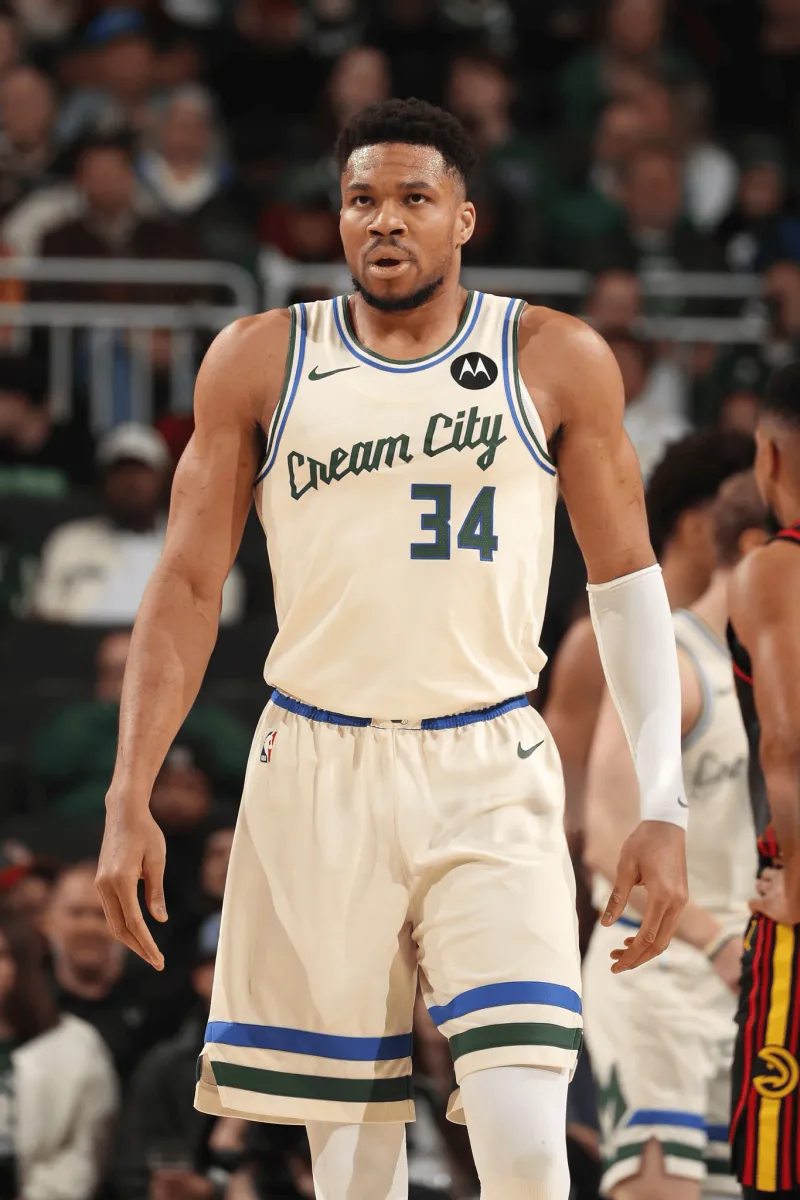 比赛中,阿德托昆博上脚Nike Giannis Freak8。